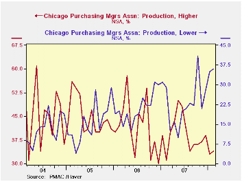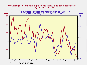 During the last ten years there has been a 66% correlation between the index and the three-month change in US factory sector industrial production. There has been an 85% correlation between the Chicago figure and the national ISM index (due for release on Monday) and that is the highest correlation of all the regional series with the Nat'l index.