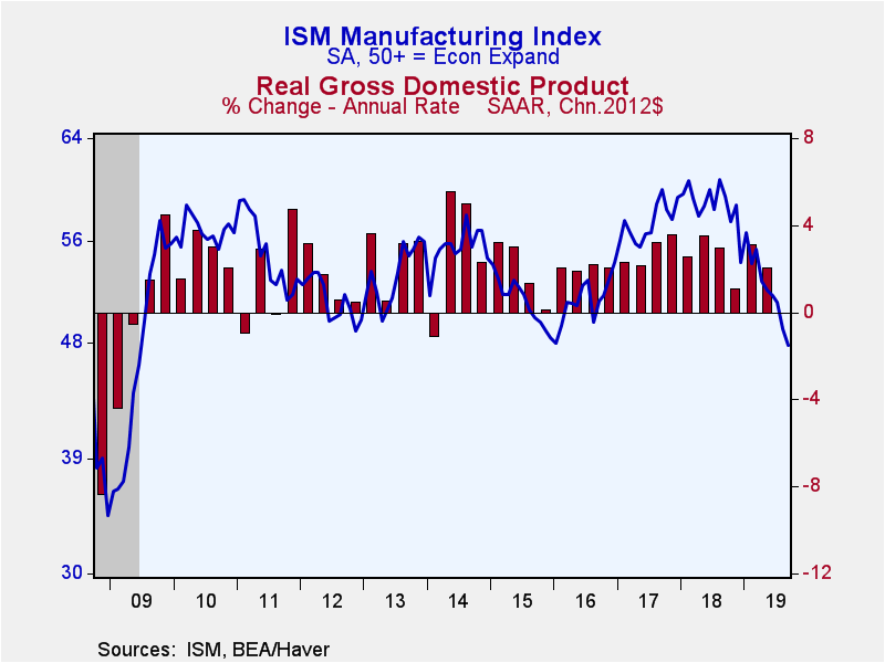 Global| Oct 01 2019ISM Factory Sector Index Declines to Ten-Year Low