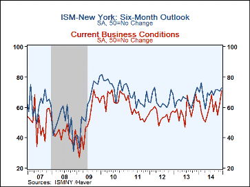 The Institute for Supply Management reported that, for New York State, their December index of business conditions expected in six months increased to 72.9, the highest level since February. Improved expectations were forming throughout the year. The latest rise pulled the 2014 average up to 69.5, the highest reading since 2010. Improvement was accompanied by a strengthened reading for current economic conditions. This index surged to 70.8 last month from 62.4 in November. It was its highest level since October 2010 and capped a year of firmer business conditions. Last year's average rose to 59.7, the highest level since 2010.