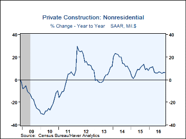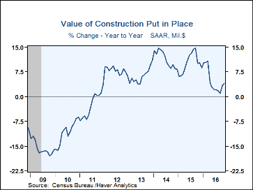 The value of construction put-in-place increased 0.9% during November following a 0.6% October gain, revised from 0.5%. Construction was up 4.1% y/y following stronger growth from 2012 through 2015. The latest rise compared to expectations for a 0.6% increase in the Action Economics Forecast Survey.