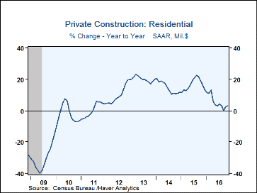 Private sector construction activity improved 1.0% (4.6% y/y) after a 0.1% October uptick. Residential building increased 1.0% (3.0% y/y) after a 1.6% improvement. Single-family building activity increased 1.8% (-0.9% y/y) after a 2.8% jump. The value of improvements rebounded 1.5% (+6.8% y/y) and made up October's 1.0% decline. Multi-family building activity was off 2.7% (+10.7% y/y), the first monthly fall since July.