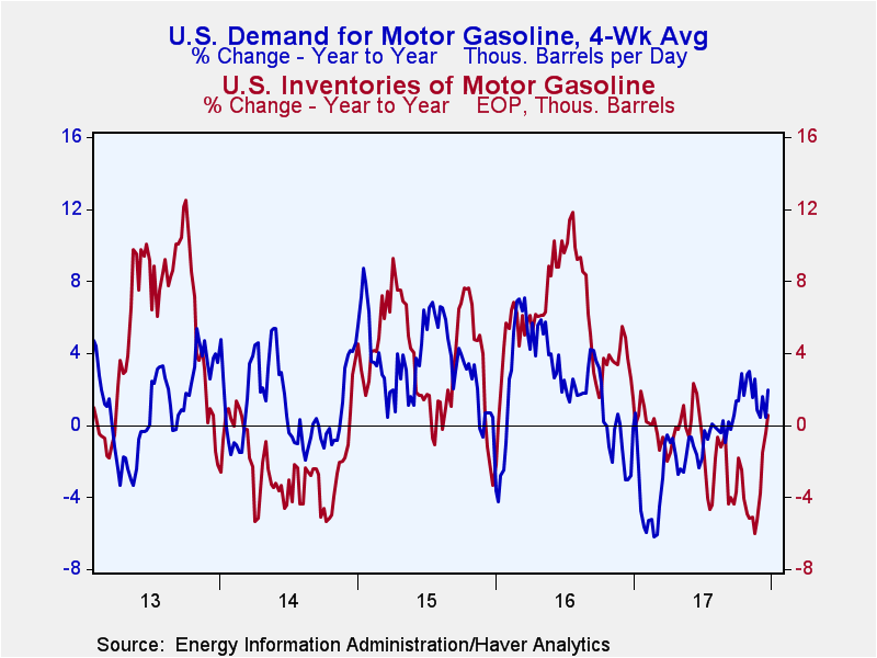 The energy price data are reported by the U.S. Department of Energy. The petroleum demand and inventory figures are from the Oil & Gas Journal Weekly. These data can be found in Haver's WEEKLY database. The daily figures are in DAILY and greater detail on prices, demand and production, along with regional breakdowns, are in OILWKLY.