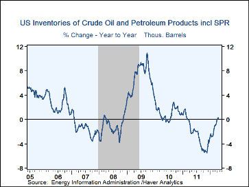 Reduced driving and improved fuel economy lowered the demand for gasoline by 4.2% y/y last week. The demand for residual fuel oil demand, used for heating, fell 10.2% y/y but distillate demand inched up 0.1% y/y. Inventories of crude oil and petroleum products ticked up 0.2% year-to-year. That comparison was improved versus the 5.0% decline this past fall.