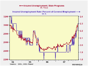 The insured rate of unemployment rose to 2.3% after four weeks at 2.2%. The latest also was the highest since 2004.