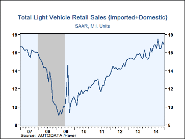 Sales of light vehicles during 2014 improved 5.8% y/y to 16.49 million units, the highest level since 2006. Moderate pricing has been a factor in lifting sales. Since 2006, the CPI for new vehicles rose at a 0.9% annual rate. During December, sales slipped 1.7% m/m to 16.92 million (SAAR) but remained up 9.0% y/y. During the last six months, however, sales were little changed.
