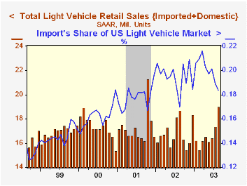 Imported vehicle sales rose a lesser 6.3% and captured 18.4% of the US market.