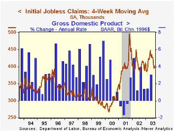 The four-week moving average of initial claims rose to 401,500 (+0.9% y/y), the first time above the 400,000 threshold since late July.
