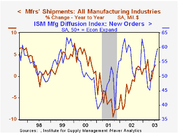 Factory shipments jumped 2.5% (1.6% y/y). Less the transportation sector shipments rose 2.2% (3.7% y/y. Shipments of computers and electronic products have been strong, up 7.3% y/y.