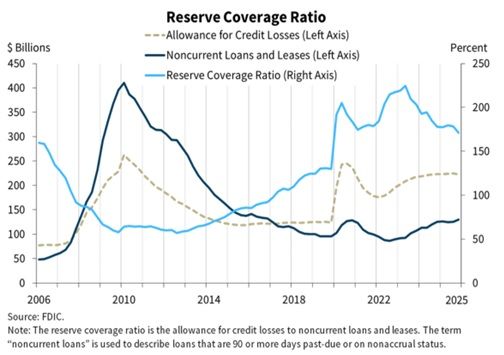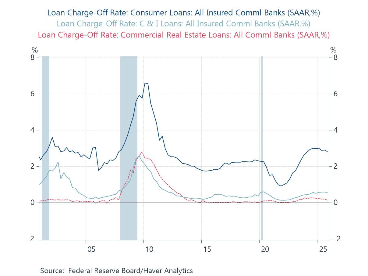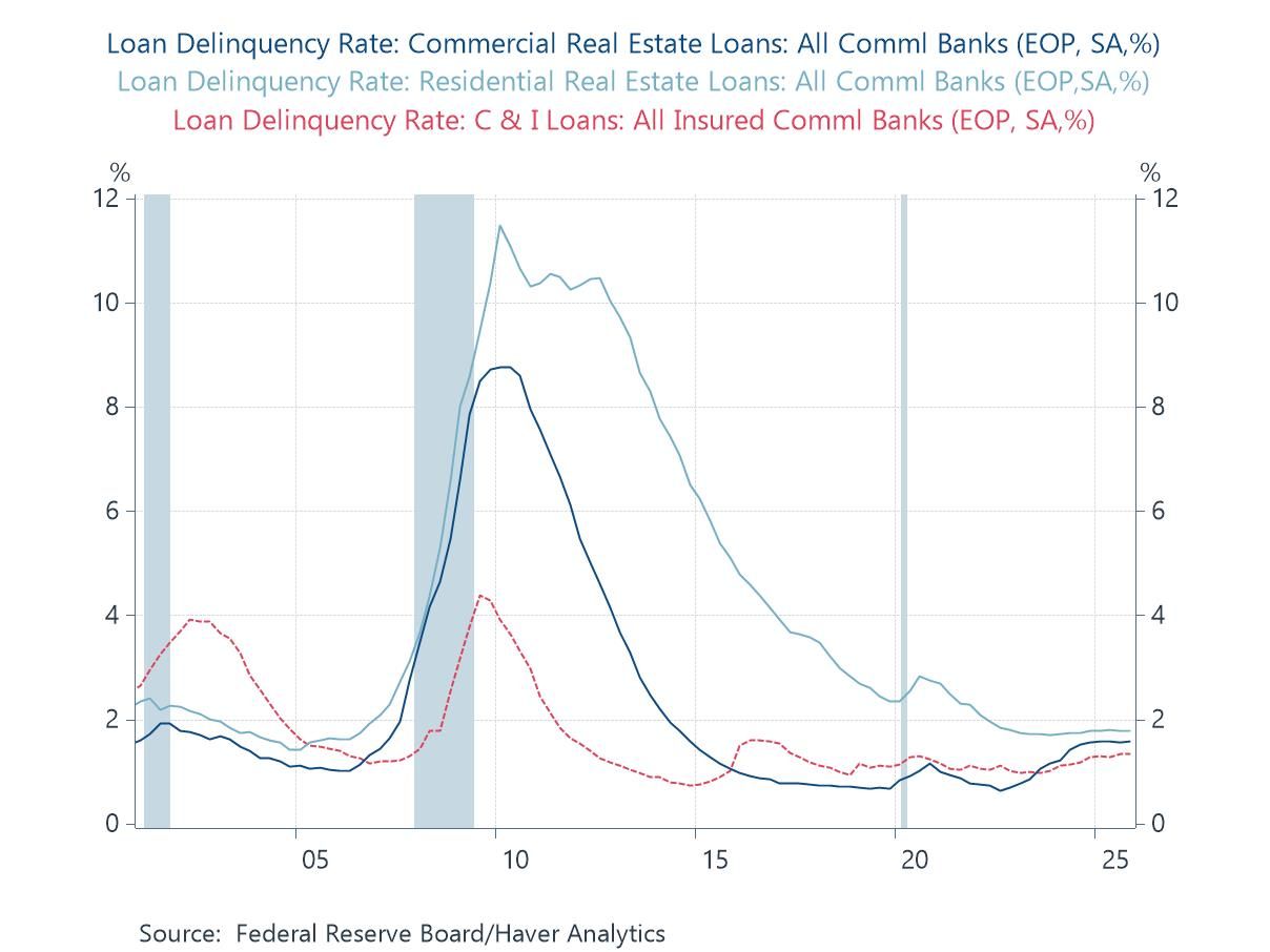 In an interview last week, Jamie Dimon, CEO of JPMorgan, said "banking rivals are doing dumb things" and drew parallels between current credit conditions and those in the years leading up to the 2008-2009 Great Financial Crisis. Immediately following Dimon's interview, the FDIC issued its "Quarterly Banking Profile", which provided evidence that commercial banks are in sound shape financially, with relatively high levels of capital and fairly low loan delinquencies. Private credit has also been in the news, fueling fears of real problems. Private credit is not supervised and there are no reliable sources of data for evaluating private credit. This makes financial markets vulnerable to speculation and anecdotal evidence.