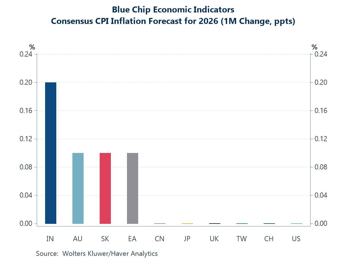Chart 3: Blue Chip: 1-month change in consensus 2026 inflation forecasts