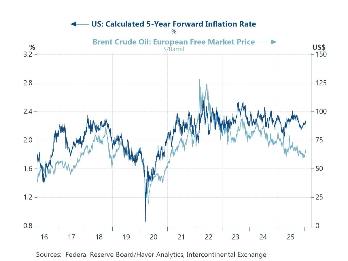 Inflation expectations and oil prices Capital-flow dynamics may have also begun to spill over into how markets are pricing US inflation risk and monetary credibility. Historically, medium-term US inflation expectations have remained closely anchored to global energy prices, as illustrated by the strong co-movement between the 5-year forward inflation rate and Brent crude prices. More recently, however, that relationship has begun to fray: inflation expectations have proven notably resilient even as oil prices have softened, suggesting that markets are increasingly pricing political and policy risk rather than cost-push fundamentals alone. Renewed tariff threats under President Trump, combined with heightened geopolitical tensions involving Greenland and transatlantic relations, risk reinforcing concerns that future inflation outcomes could be shaped as much by political intervention as by macroeconomic conditions. Any perception that the Federal Reserve may face constraints on its operational independence would compound this shift—loosening inflation anchors, raising term premia and increasing the sensitivity of capital flows to US policy credibility.