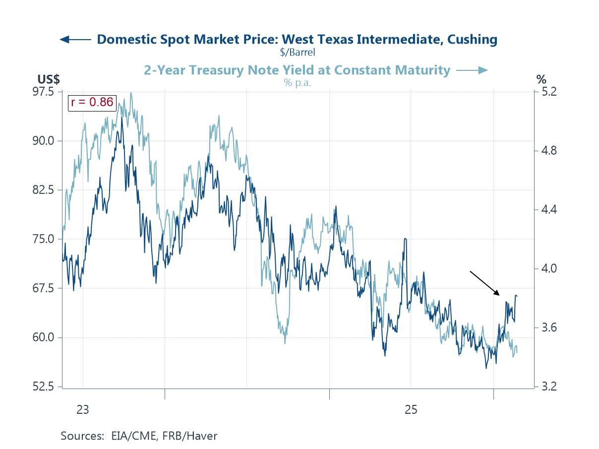 Chart 5: Global Oil Prices Versus US 2-year Treasury Yield