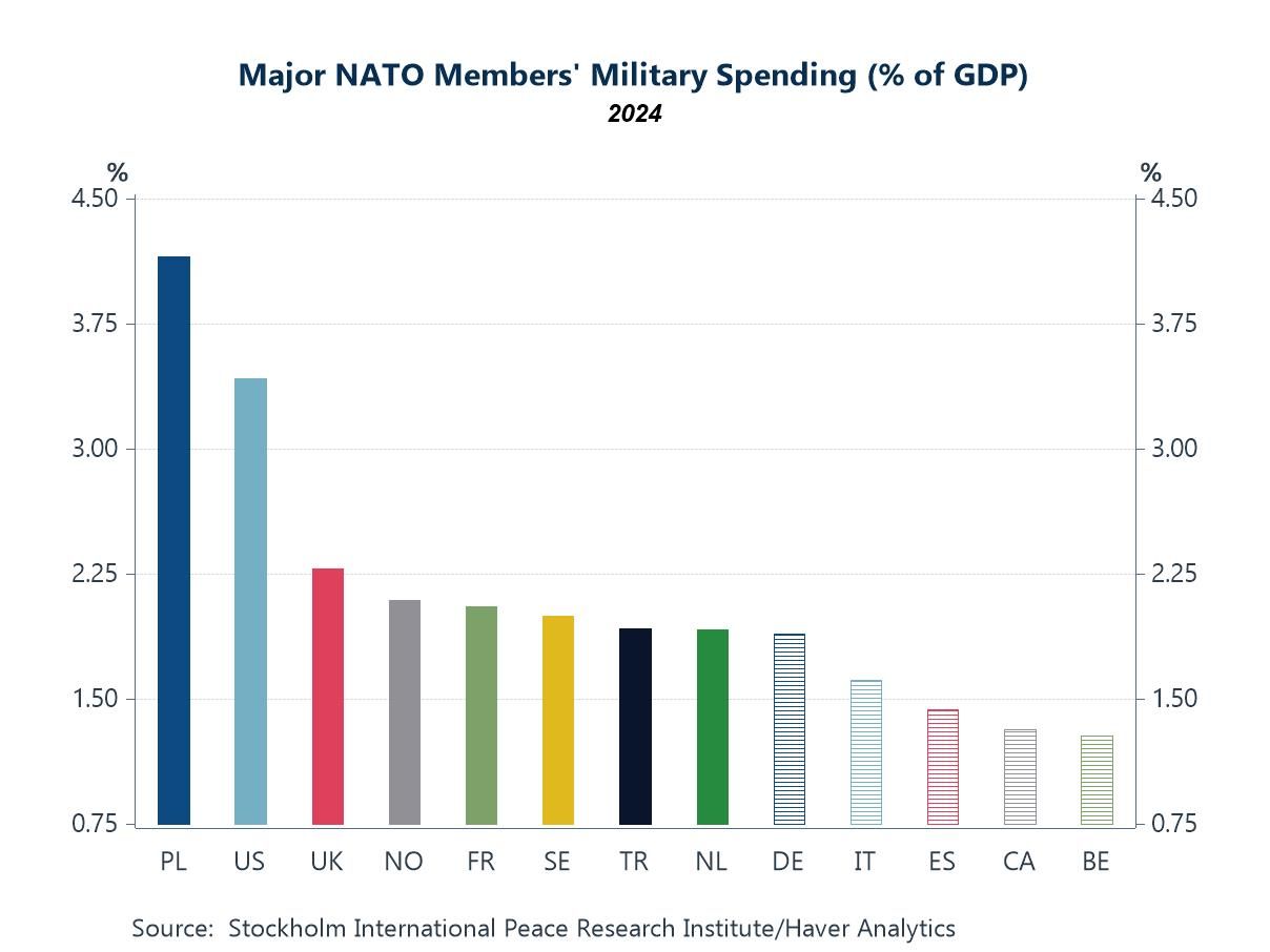 Credit on a Tightrope The year will bring notable developments in debt and credit conditions, with implications for financial stability. Across major economies, pressure for higher public spending — and thus increased borrowing — is rising. Under US pressure, several NATO members have pledged to raise defence outlays; as of 2024, Poland leads in military spending as a share of GDP, followed by the US and UK (chart 12). Europe’s rapidly ageing populations make higher healthcare spending inevitable. With more high-income taxpayers retiring and a growing number of pensioners, countries face rising expenditure alongside pressure on income-tax revenues. Outside Europe, China’s debt-fuelled growth continues to draw scrutiny amid shrinking opportunities for efficient investment, while its property market remains a focus despite slower deterioration. In emerging Asia, domestic currency markets — including India and parts of Southeast Asia — are poised for potential volatility from foreign-investor flows, influenced by monetary policy, economic prospects, and geopolitical developments.
