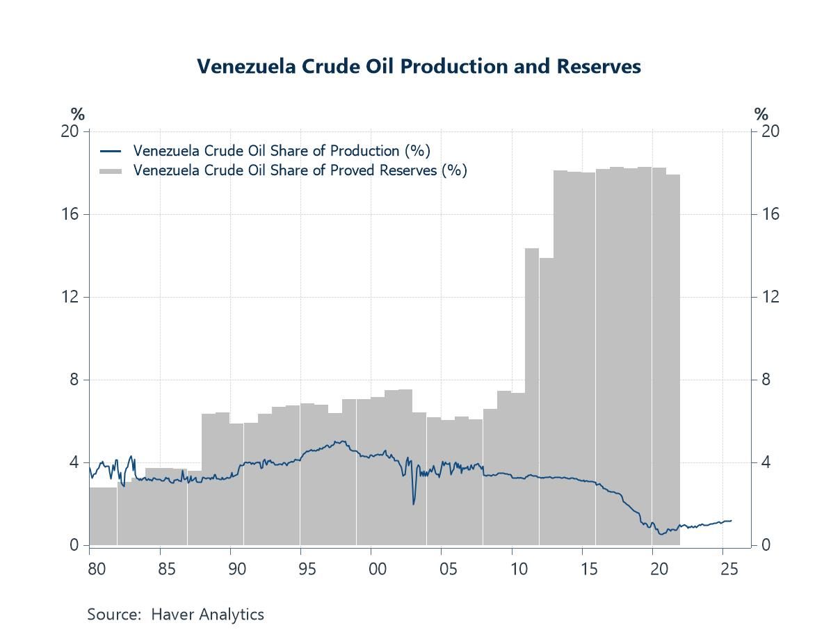 To illustrate the potential significance of Venezuela’s crude oil industry, chart 2 shows that the country holds nearly a fifth of the world’s proved crude oil reserves. However, output remains disproportionately low relative to reserves, possibly reflecting years of US sanctions as well as mismanagement and chronic underinvestment. Given the current state of the industry, substantial investment will likely be required for Venezuela to restore production to historically high levels and to more fully tap its deep proved reserves. As a result, any meaningful surge in Venezuelan crude output is likely to take time, which may help explain the muted market response to recent US–Venezuelan developments. Also of note, China has been a major lender to Venezuela, including through “oil-for-loan” arrangements in which repayments are made in crude oil. It remains to be seen how these existing and future agreements may be affected by recent developments.