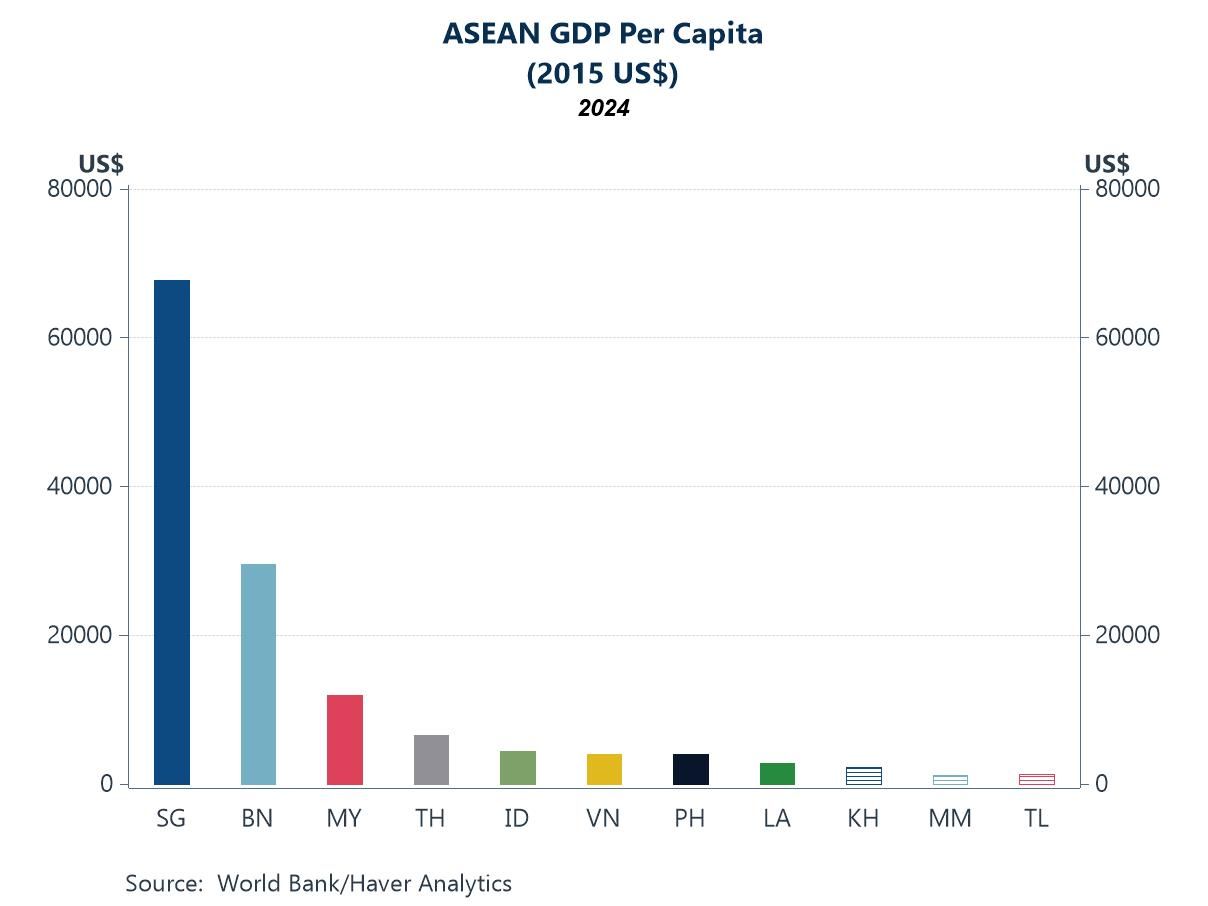 The ASEAN summits Whilst US President Trump’s attendance at the ASEAN–US Summit in Malaysia dominated headlines, there were also several other notable developments at last week’s ASEAN meetings in Kuala Lumpur. Most prominently, Timor-Leste was officially admitted as ASEAN’s eleventh member, following a two-decade accession process during which the country actively aligned its political and economic frameworks with ASEAN standards. Membership grants Timor-Leste access to the bloc’s broader security and economic mechanisms and could open further avenues for trade, investment, and development cooperation. Nonetheless, the country still has considerable ground to make up relative to its new ASEAN peers, particularly in terms of both GDP and GDP per capita (chart 4).