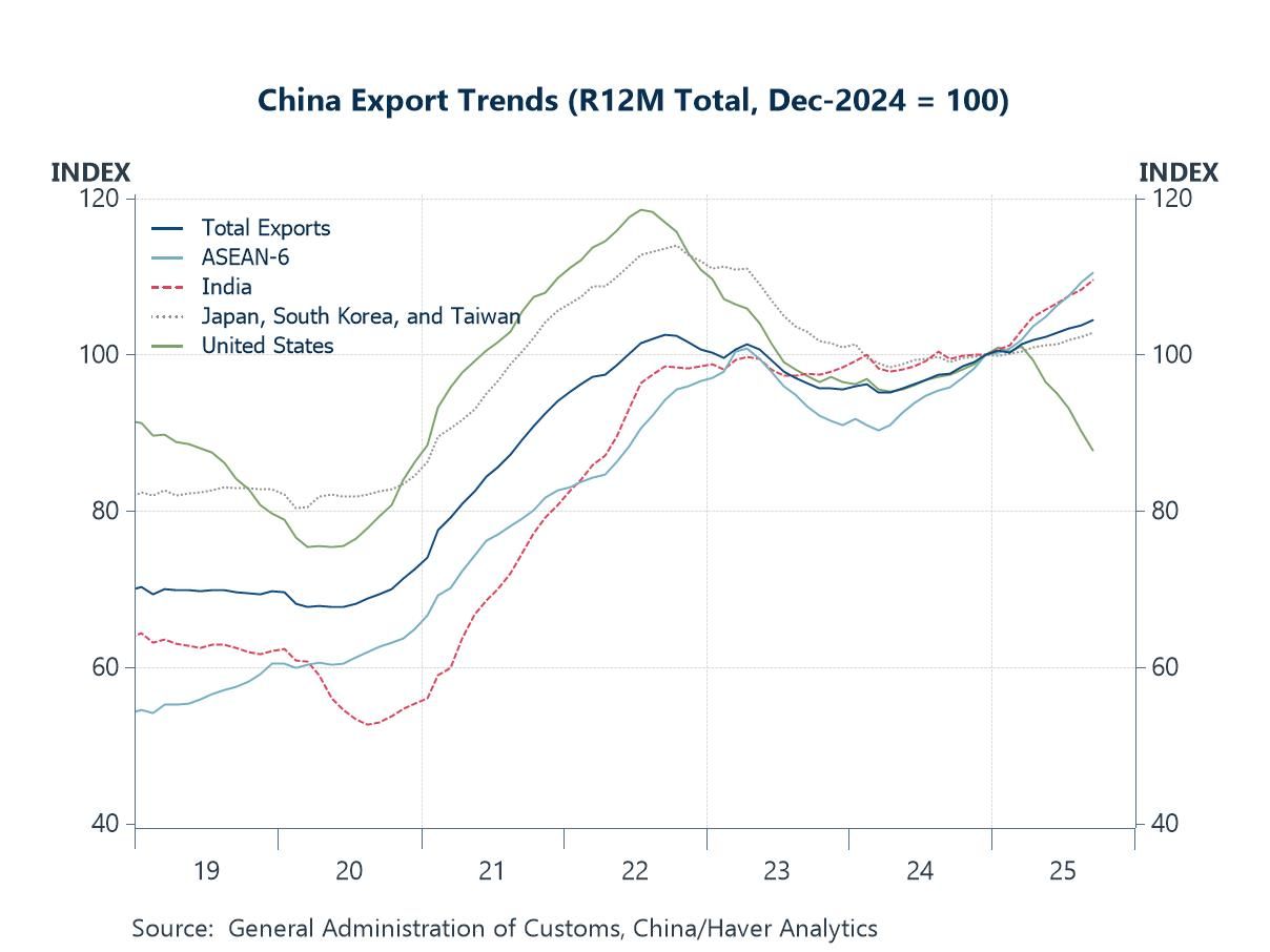 Trump’s visit to Japan was another highlight. Relations with new Prime Minister Takaichi got off to a strong start, and further details emerged on Japan’s previously cited $550 billion investment commitment in the US—substantial even relative to Japan’s existing direct investment there (chart 3). However, specifics on the timing and implementation of the investment remain limited. Meanwhile, at the ASEAN Summit earlier in the week, aside from Trump’s engagements, the bloc officially welcomed its 11th member—Timor-Leste—the first new member in decades—granting it access to the bloc’s mechanisms and potentially supporting a catch-up in economic development (chart 5). Looking ahead, the focus on China and Japan is likely to continue, with China set to release its October trade (chart 6) and CPI data, and Japan scheduled to report employee wages and household spending.