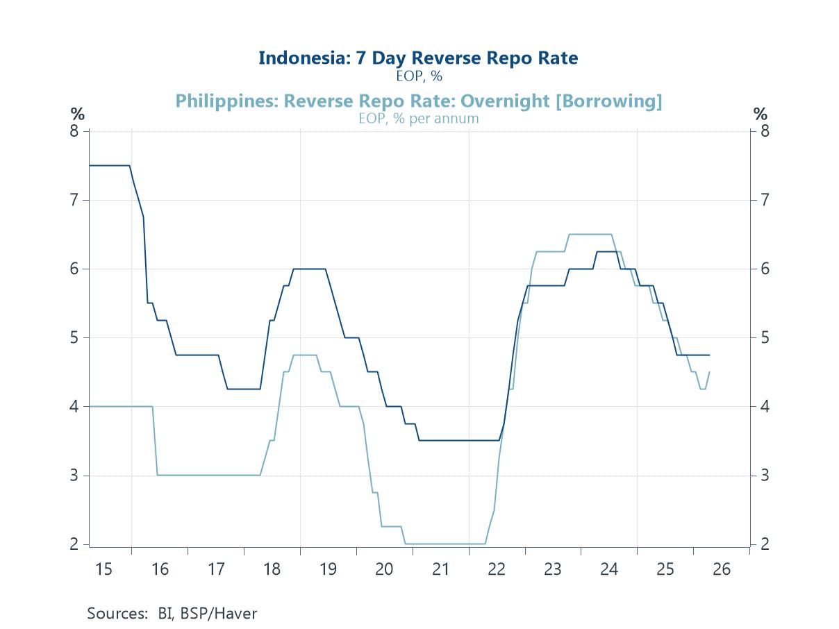 The latest central bank responses to the conflict Over the past week, Asia saw two central bank decisions. The Philippines’ (BSP) opted to deliver its first rate hike in about two years, while Indonesia’s (BI) chose to stand pat on policy rates and instead committed to stepped up FX intervention (chart 3). This latest round of decisions points to a further fraying of what had been a broad regional monetary policy consensus, namely that central banks would delay additional easing while maintaining a high bar for outright tightening. Domestic considerations, however, remain paramount. In the Philippines’ case, the central bank has moved to rein in inflation, which is already showing notable signs of price pass through stemming from disruptions linked to the Strait of Hormuz. That said, BSP is not the first in the region to buck the reluctance to tighten. Singapore’s central bank had already tightened policy in mid-April, albeit through its own distinct framework, given its use of the exchange rate rather than policy rates as the primary channel for monetary policy.