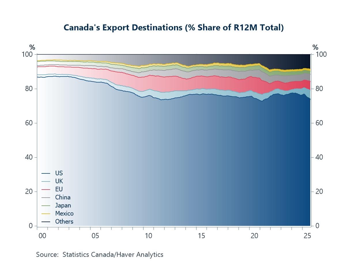 On China’s external developments, another high-profile outcome followed Canadian Prime Minister Carney’s visit to Beijing. Canada and China unveiled a trade deal lowering tariffs on Canada’s imports of 49,000 Chinese EVs to 6.1% from 100%, in exchange for China easing tariffs on Canadian agricultural products. Carney remarked that China is now a “more predictable” trading partner than the US and that “a new world order” is taking hold. These comments likely reflect longstanding trade frictions between the US and Canada, as US President Trump has sought to renegotiate what he views as unfair trade arrangements. The new Canada–China agreement is also expected to catalyse significant Chinese joint-venture investment in Canada over the coming years. The move marks a notable shift for Canada, which has traditionally been an exceptionally close partner of the US, not only economically (chart 2). That Ottawa has inked a trade deal with Beijing while US–China tensions remain elevated represents a clear break from its previous stance and has, unsurprisingly, drawn criticism from Washington.