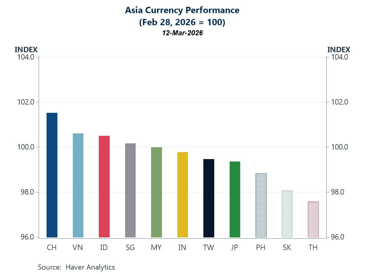 In our Letter this week, we examine the ongoing Iran war through an Asian lens. Geopolitical uncertainty and crude oil prices have remained elevated (chart 1), despite early reports concerning the potential for a brief conflict that tempered investor caution. Attention has now centred on the Strait of Hormuz, through which a significant share of global oil typically flows. With shipments now nearly halted (chart 2), much of the world’s energy flow has effectively stalled. While these developments have broad global implications, their impact on Asian economies is more nuanced. This partly reflects differences in energy mixes across the region (chart 3), as well as the historical relationship between oil prices and energy inflation (chart 4). Further compounding the challenges faced by Asian oil importers are currency effects: a broader risk-off turn in markets has weighed on several Asian currencies (chart 5), raising the local-currency cost of energy imports. Amid these pressures, several regional central banks are also set to decide on policy this week (chart 6), alongside major Western counterparts such as the Federal Reserve. Near-term rate cut expectations have been pushed back in many cases amid renewed inflation concerns, while in some Asian economies markets are even pricing in the possibility of further rate hikes.