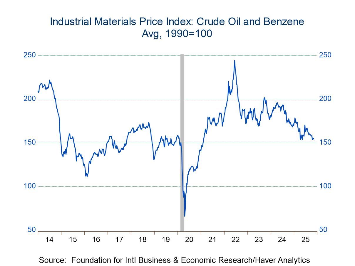 The Industrial Materials Price Index from the Foundation for International Business and Economic Research (FIBER) eased 0.1% during the four weeks ended November 7, 2025 after improving 0.3% in the prior four-week period. The index increased 0.5% y/y following a 0.8% y/y gain at the end of October.