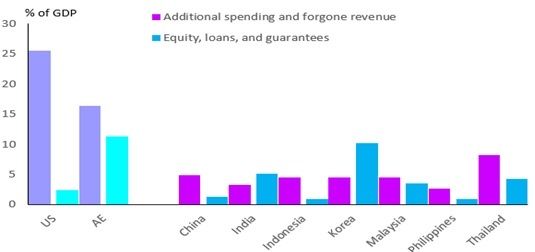 During the Covid-19 crisis, fiscal support in advanced economies averaged about 28% of GDP, while Asian economies averaged only 8.4% (Figure 1).