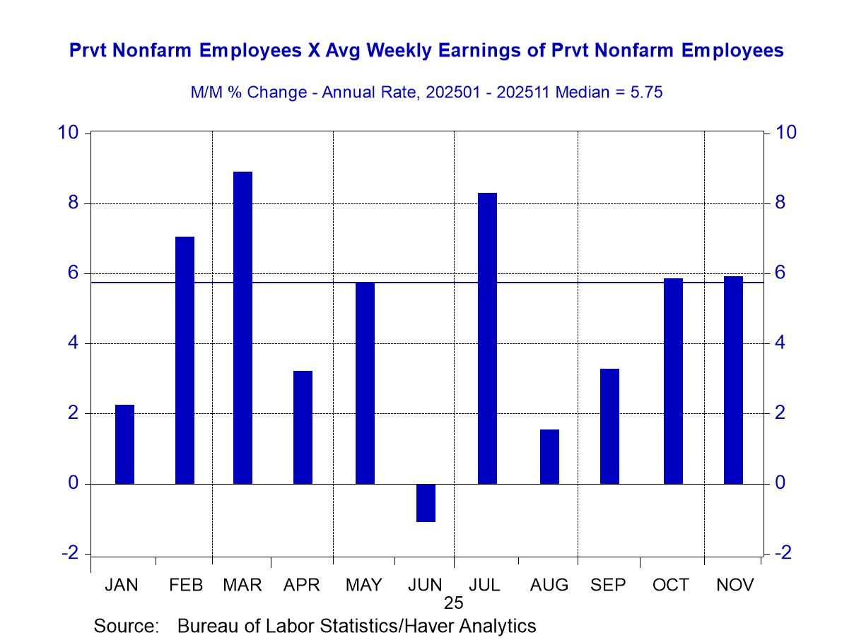 For all the talk of a weakening labor market, the wage bill for private nonfarm employees (private nonfarm employees times their average weekly earnings) has risen at annualized rates of 5.85% and 5.91% in October and November, respectively, compared to the median increase of 5.75% in the eleven moths of 2025. If these data are valid, it would seem that labor market earnings are growing relatively fast, especially in light of all the talk of a weak labor market. Why would employers be increasing the labor wage bill so rapidly if labor demand were weak? Perhaps because the labor supply is shrinking.