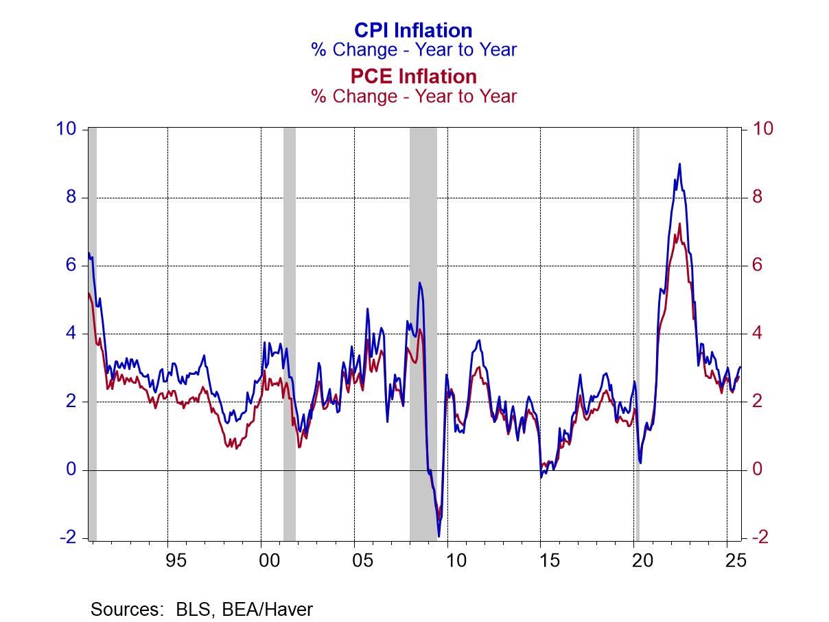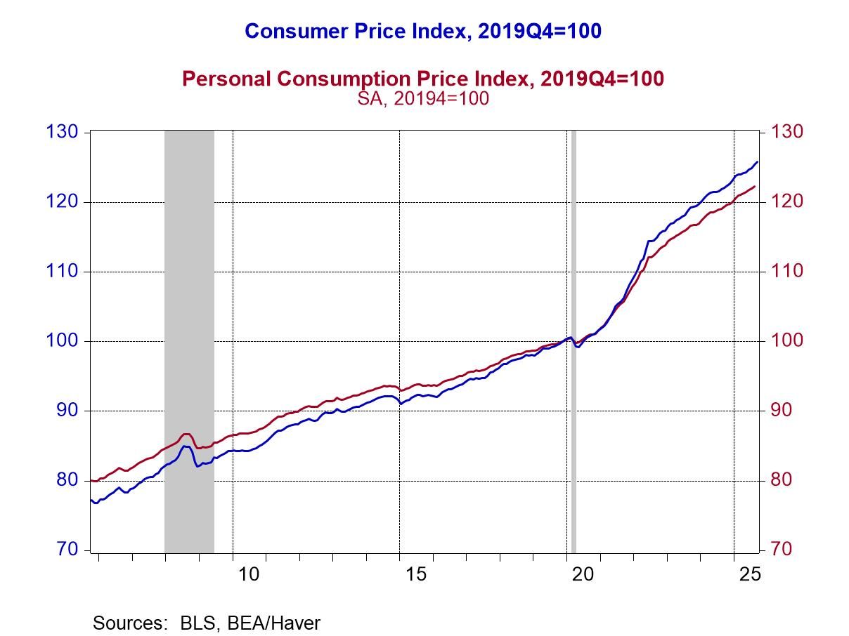 Both titles still apply to the current situation. PCE inflation is 2.7% and CPI inflation is 3.0%--which may seem modest, but the cumulative increase in prices for goods and services is the primary focus of consumers. It directly influences their standards of living, their perceptions of confidence and their assessments of government leadership. Meanwhile, the focus of financial markets and the Fed is nearly exclusively on the rate of inflation and changes in the rate, to the tenth of a percent and beyond. Presently, even amid lack of government data, the focus in financial markets is the extent to which PCE inflation is above the Fed’s 2% target, and what is the appropriate policy rate that would eventually reduce inflation to 2%.