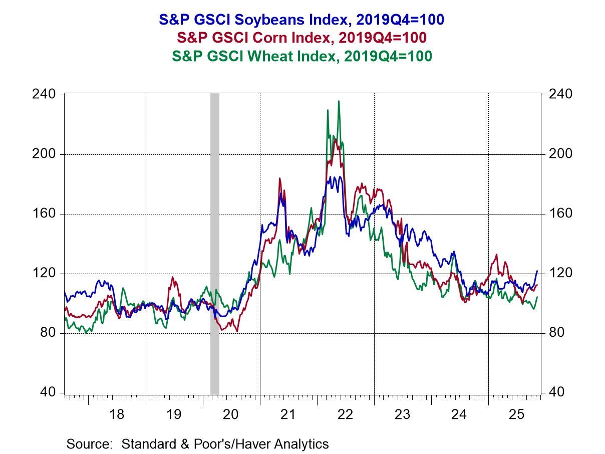 Chart 6. Cumulative Price Changes Since 2019Q4=100: Soybeans, Corn and Wheat