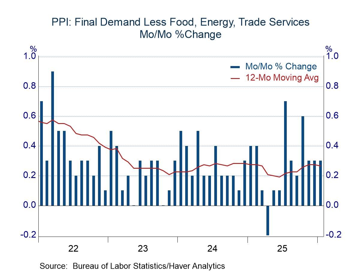 The headline PPI and its components sometimes move erratically, and that was certainly the case in January. The headline index (so-called final demand PPI) jumped 0.5%, one of the firmer readings of the past few years. However, a quick review of the detail in the report shows that marked changes in frequently noisy areas accounted for most of the pressure. Without such noise, the headline measure would have increased moderately, perhaps 0.1% or 0.2%.