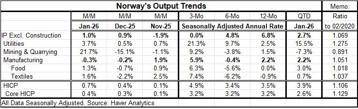 Norway: Output Advances in January