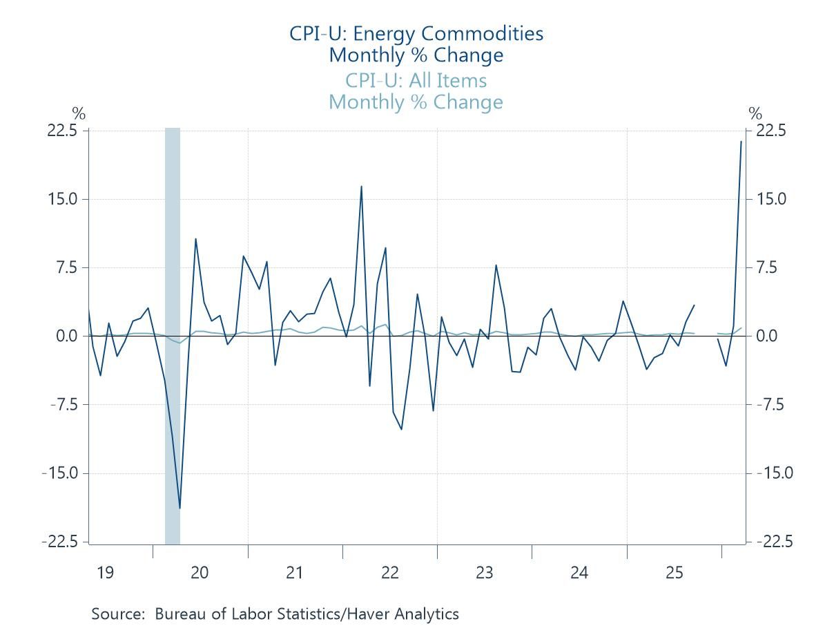 This dramatic rise in gasoline and diesel prices point to a very quick adjustment of retail prices. This suggests that the impact of the surge in crude prices on the CPI will be temporary, with the bulk of it in 2 months. I expect the residual impact will be relatively modest. Businesses will face some increases in operating costs, but the slowdown in aggregate demand growth--the anticipated outcome of a supply shock--is expected to constrain the pass through of higher operating costs to consumers. That is, a deceleration in aggregate demand will constrain the ability of businesses to raise product prices, and result in a one-time squeeze on select business margins. The residual impact of the oil price shock on the CPI beyond a several month temporary impact may be elongated a bit by the tax cuts of the OBBBA, which by increasing after-tax disposable income, may mitigate the impact of the negative oil shock on aggregate demand.