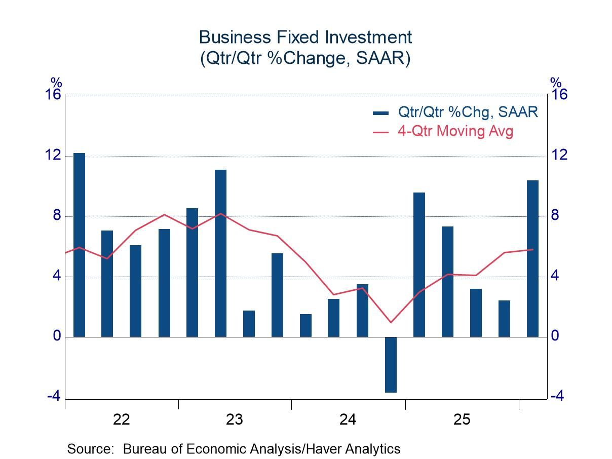 - Robust business investment led the advance; moderate support from consumers.