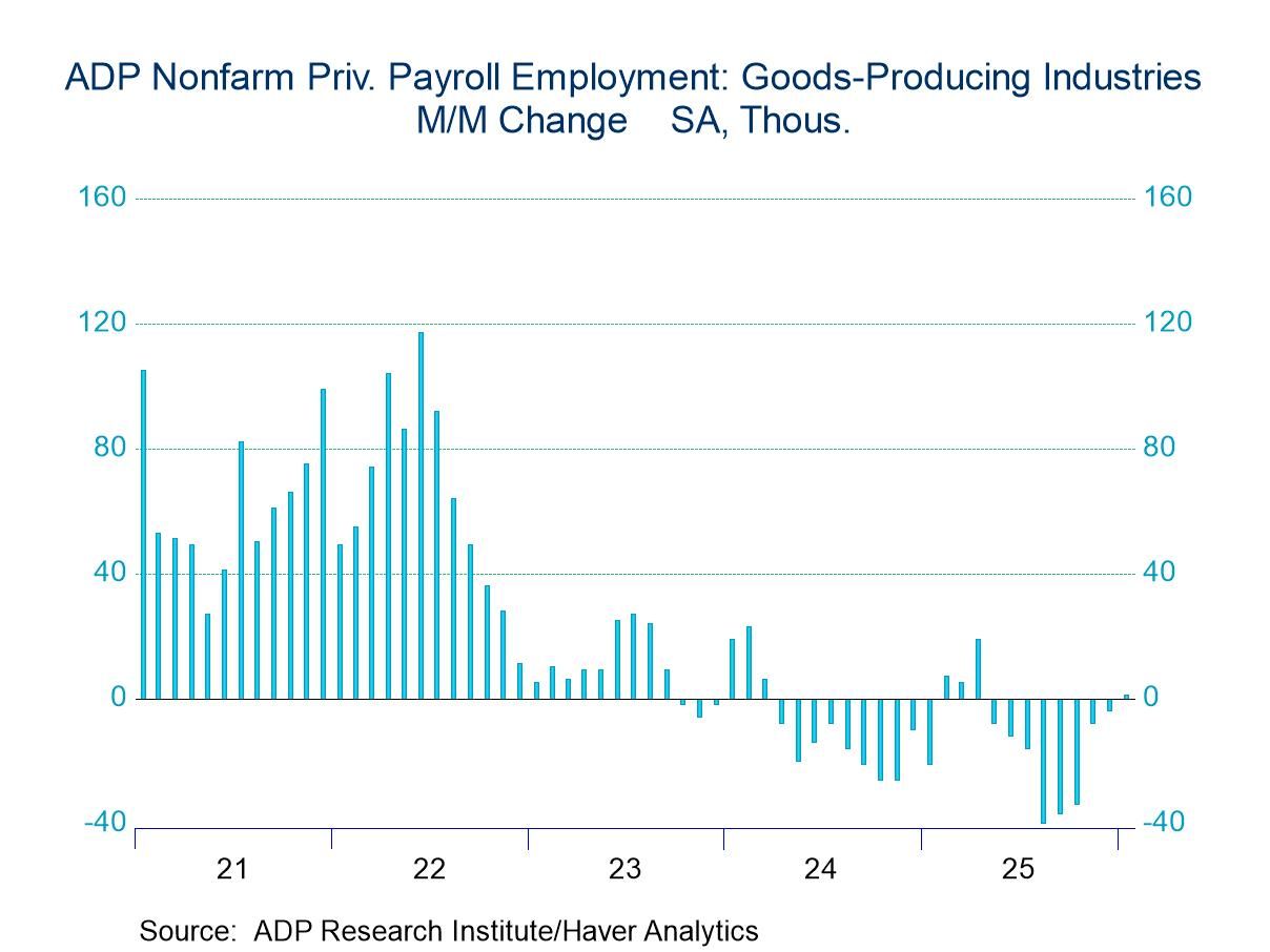 U.S. nonfarm private sector payrolls rose 22,000 (0.2% y/y) in January following a downwardly revised 37,000 increase in December (previously 41,000) and a 74,000 gain in November, according to the ADP National Employment Report. The three-month average change was +44,000 in January, the same as in December. For all of 2025, the average monthly gain was 33,000. The Action Economics Forecast Survey expected a 45,000 increase in January.