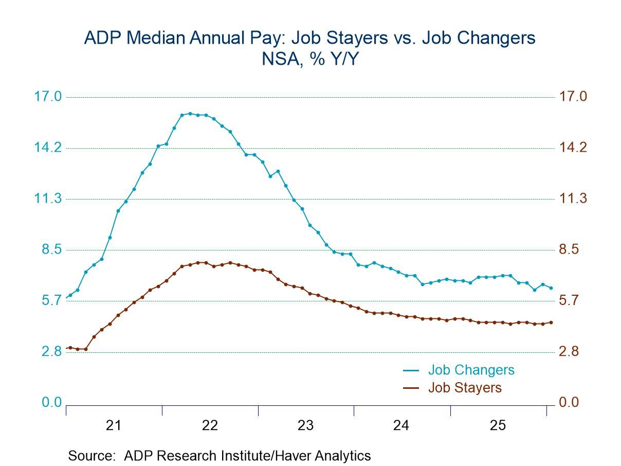The ADP National Employment Report and Pay Insights data can be found in Haver's USECON database. Historical figures date back to January 2010 for private employment. Pay data date back to October 2020. The expectation figure is available in Haver's AS1REPNA database.