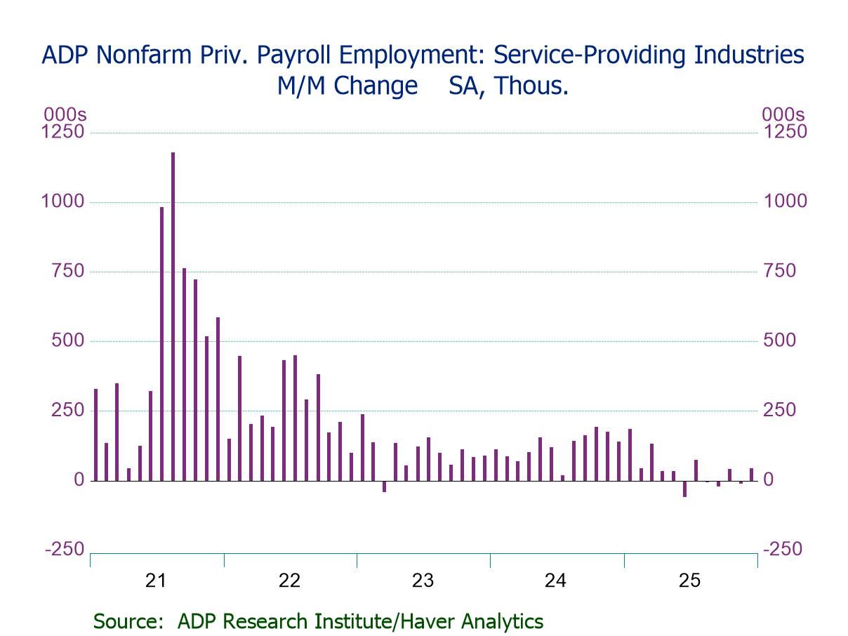 U.S. nonfarm private sector payrolls rose 41,000 (0.5% y/y) in December following a 29,000 drop in November (-32,000 initially) and a 47,000 gain in October (unrevised), according to the ADP National Employment Report. The three-month average change was +20,000 in December, compared to +24,000 in Q3’25, +22,000 in Q2, and +139,000 in Q1. The Action Economics Forecast Survey expected a 48,000 increase in December.