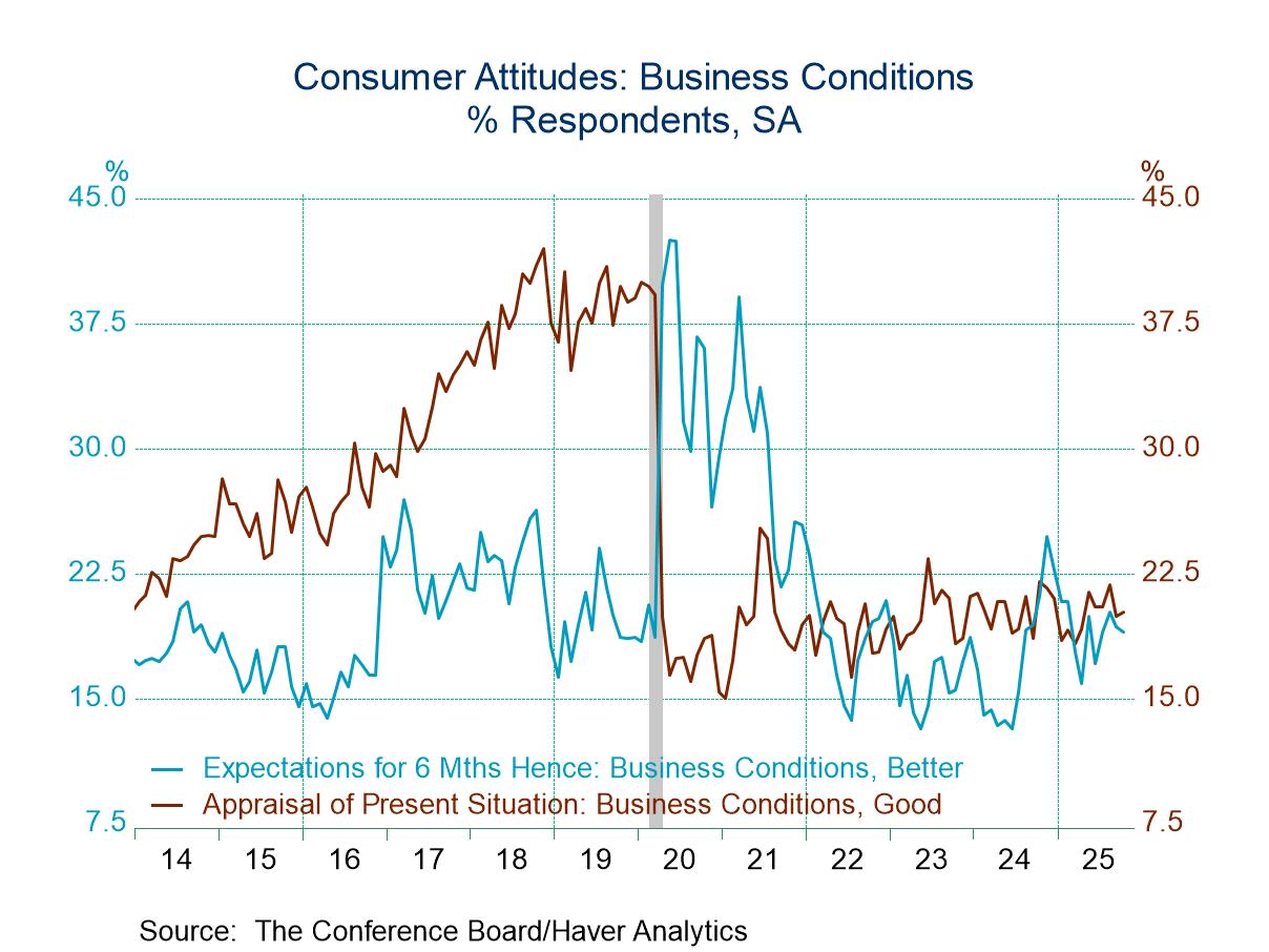 The Present Situation index rose 1.4% in October (-5.0% y/y) after falling 3.7% in September, revised from down 5.3%, after easing an unrevised 0.3% in August. The Expectations Index declined 3.9% this month (-22.2% y/y) after easing 0.4% in September, revised from a 1.7% decline.