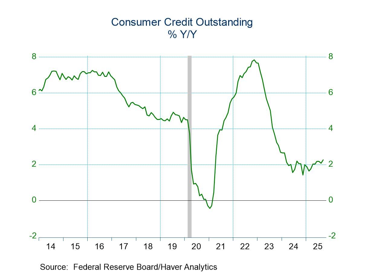 Consumer credit outstanding increased $13.1 billion (2.3% y/y) in September after rising $3.1 billion in August, revised from $0.4 billion, and $17.7 billion in July, revised from $18.1 billion. A $10.0 billion rise had been expected in the Action Economics Forecast Survey.