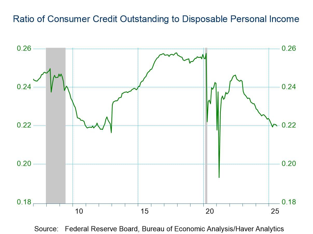 The consumer credit figures from the Federal Reserve Board are break-adjusted and calculated by Haver Analytics. The breaks in the series in 2005, 2010 and 2015 are the result of the incorporation of data from the Census and the Survey of Finance Companies, as well as changes in the seasonal adjustment methodology. The consumer credit data are available in Haver’s USECON database. The Action Economics forecast figures are contained in the AS1REPNA database.