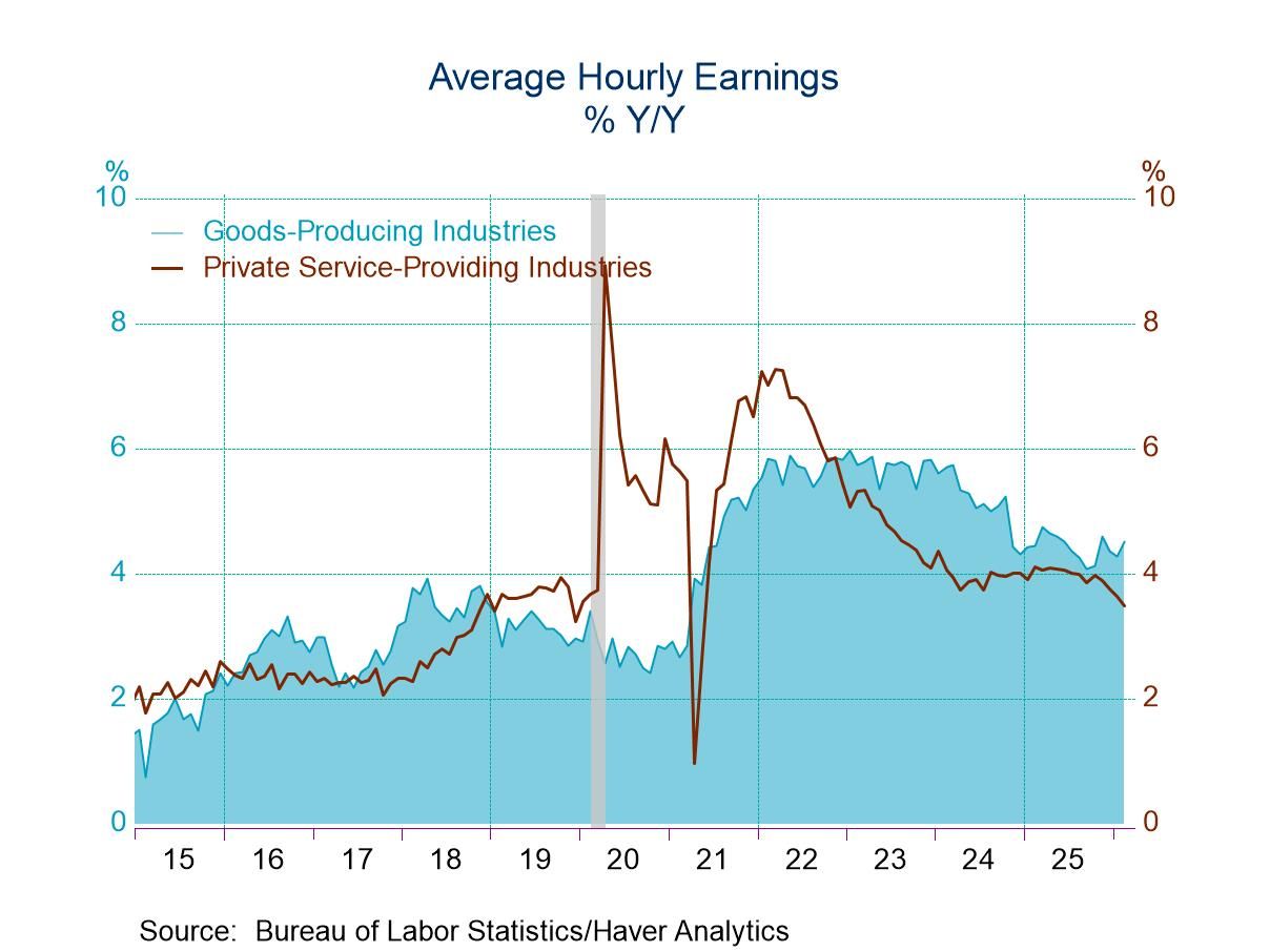 Growth of average hourly earnings (AHE), a key variable for the Federal Reserve, picked up slightly in February. AHE increased 0.4% m/m, slightly above the expected 0.3% monthly gain. The y/y rate of advance edged up to 3.8% in February from 3.7% in January. Wage growth in private service-producing firms was unchanged at 3.7% y/y while goods-producing wage growth rose to 4.2% y/y, the highest rate since May, from 4.0% y/y in January. The current pace of total AHE growth is likely to be still a little too fast to be consistent with the Fed’s 2% inflation target, although continued solid productivity growth could restrain some of the inflationary impact of the current pace of wage growth.