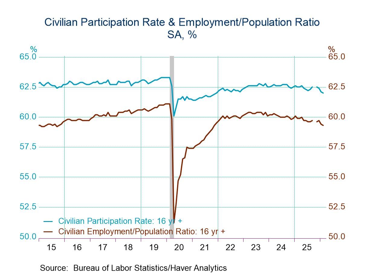 Today’s report contained the annual population adjustments for the household survey figures. These adjustments are usually released with the January figures that are released in February. However, the shutdown of the federal government in October and early November last year delayed that release. As widely expected, the population adjustment this year was extremely large and negative (-1.4 million for the labor force), reflecting the marked decrease in immigration that has occurred over the past year with the changes in immigration policy. Note that this adjustment is only made on 2026 household data. So, any comparison of current household data with that in previous years would be an apples-to-oranges comparison. However, Haver Analytics calculates population-adjusted household data for the major aggregates. They are in the USECON database.