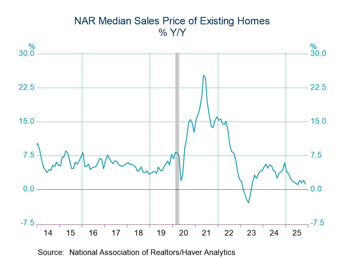 The median price of all existing homes (NSA) declined 1.4% m/m (+1.2% y/y) to $409,200 in November. The median price of an existing single-family home fell 1.4% m/m (+1.2% y/y) to $414,300 in November. Prices of single-family homes in the Northeast edged up 0.9% from a year ago. Prices in the Midwest jumped 5.8% y/y; prices in the South rose 1.0% y/y. In contrast, prices in the West declined 0.8% from a year ago.