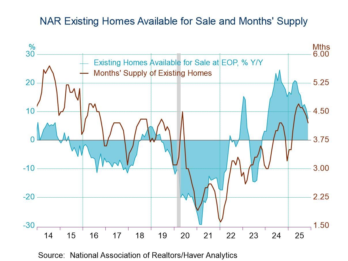 Inventories of homes for sale continued to weaken in November. The number of existing homes for sale (NSA) slumped 5.9% m/m (+7.5% y/y) to 1.43 million units in November. The supply of homes on the market at the current selling rate (NSA) slid to 4.2 months, its lowest reading since March.