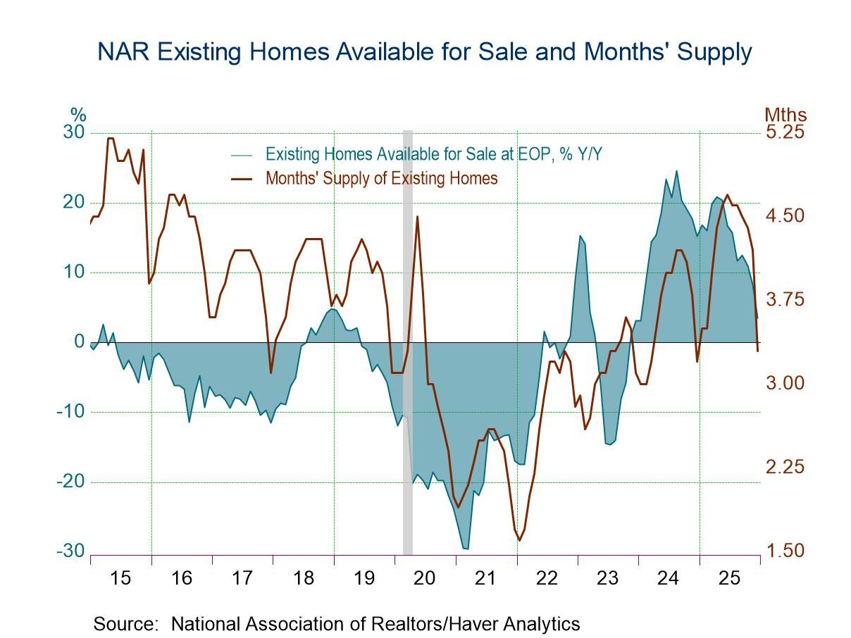 Inventories of homes for sale continued to weaken in December. The number of existing homes for sale (NSA) plummeted 18.1% m/m (+3.5% y/y) to 1.18 million units, the lowest level since January. The supply of homes on the market at the current selling rate (NSA) fell to 3.3 months, its lowest reading since last December.
