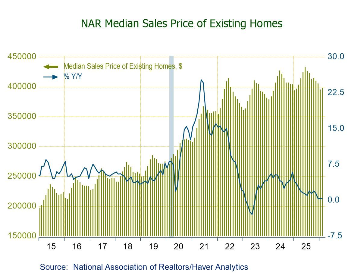 The median price of all existing homes (NSA) rose 0.8% (0.3% y/y) to $398,000 in February, the first m/m rise in four months, after a 2.5% decline to $395,000 in January ($396,800 initially). Prices remained 8.0% below a high of $432,700 in June 2025. The median price of an existing single-family home, up for the first time since October, increased 0.9% (0.2% y/y) to $401,800 in February after a 2.8% decline to $398,200 in January (the lowest level since January 2025). The median price of condos and co-ops fell 1.9% (+0.9% y/y) to a one-year-low $358,100, the first m/m fall since November, following a 1.1% January increase to $365,000. Regionally, overall prices rebounded m/m in the West (+3.0%; -1.9% y/y), South (+1.7%; +0.2% y/y), and Midwest (+1.3%; +2.3% y/y) in February, but fell m/m in the Northeast (-4.8%; +3.3% y/y).