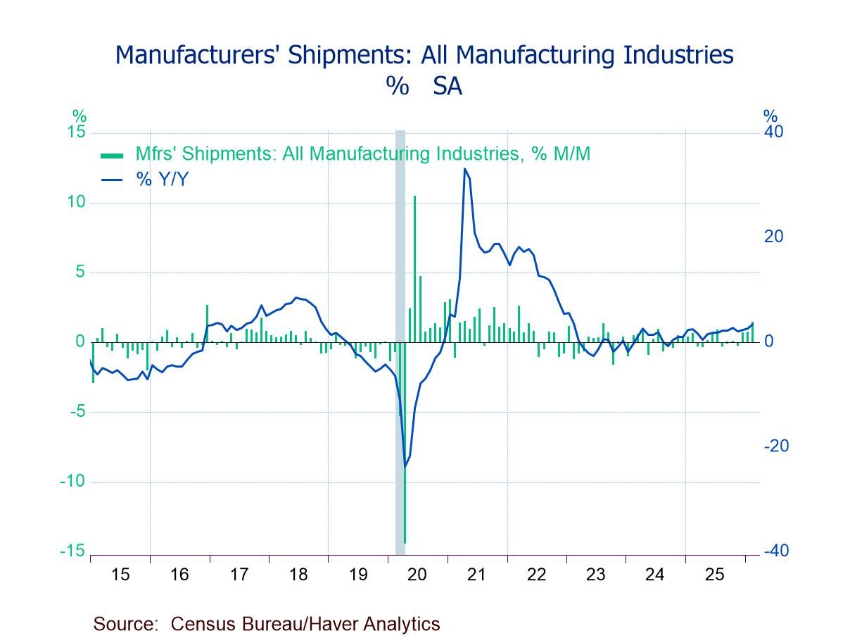 The factory sector data are available in Haver’s USECON database. The Action Economics Forecast Survey is in the AS1REPNA database.