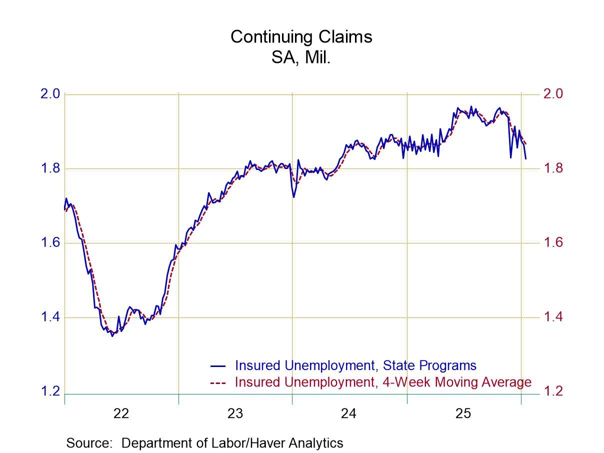 - Continuing claims declined by 38,000 from the prior week to the lowest level since September 2024.