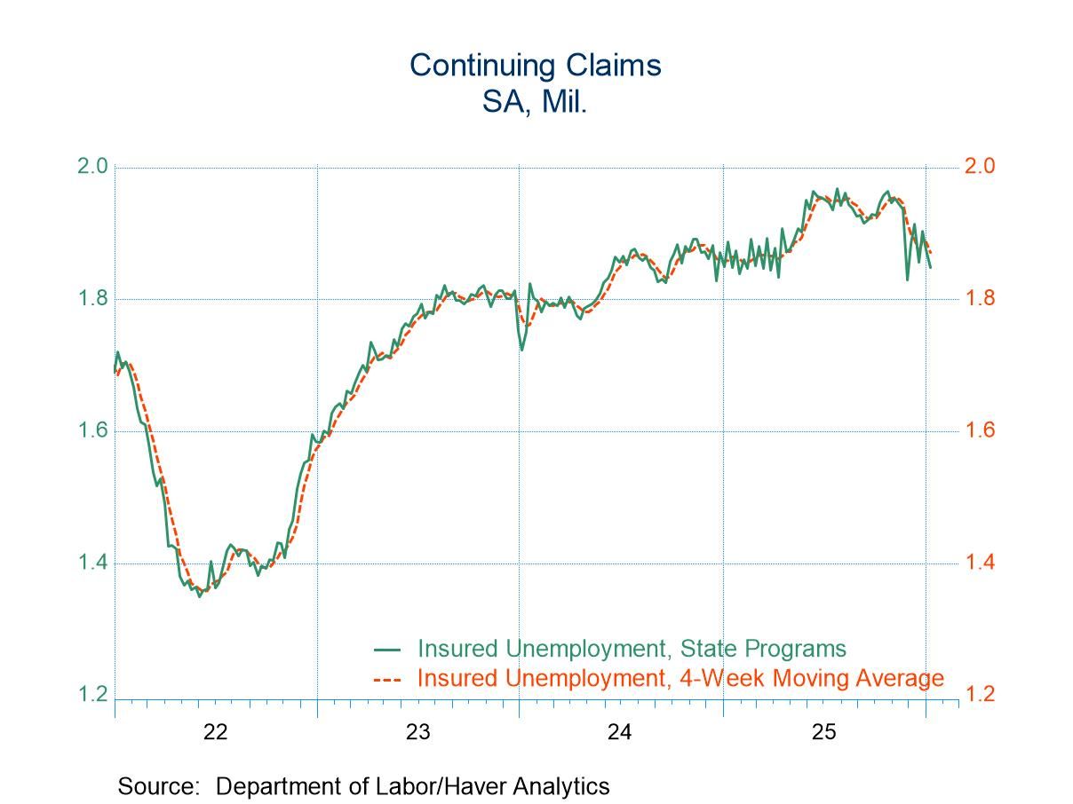 Initial claims for unemployment insurance edged up 1,000 to 200,000 in the week ending January 17, from 199,000 in the week ending January 10, revised from 198,000. The four-week moving average of initial claims was 201,500 in the January 17 week, down 3,750 from 205,250 in the January 10 week, revised from 205,000, and reaching the lowest level for this average since January 13, 2024, when it was 200,000.