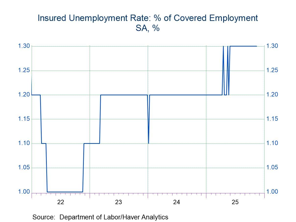 In the week ending November 15, the insured rate of unemployment (the number of beneficiaries as a percent of covered employment) was unchanged at 1.3%. It has been at this rate since the end of May.