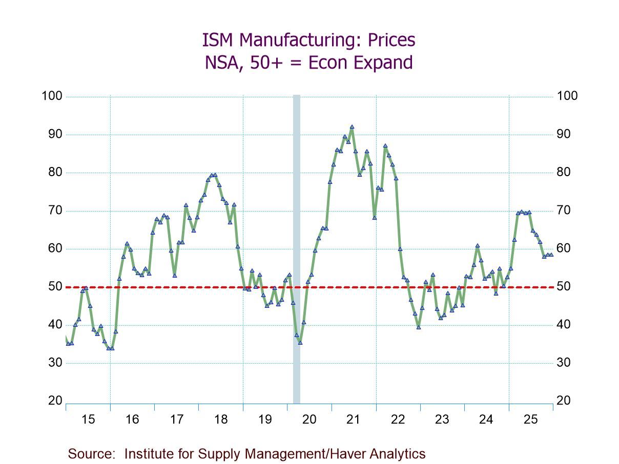 - Prices Index (unchanged at 58.5) indicates prices rise for the 15th straight month; exports & imports continue to contract.
