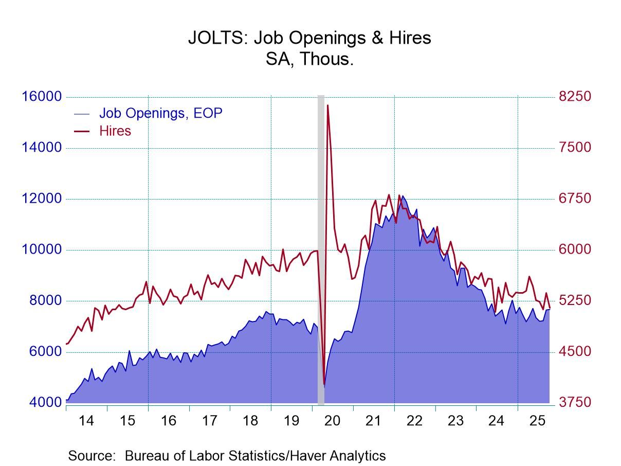 The Job Openings and Labor Turnover Survey (JOLTS) data are available in Haver’s USECON database.